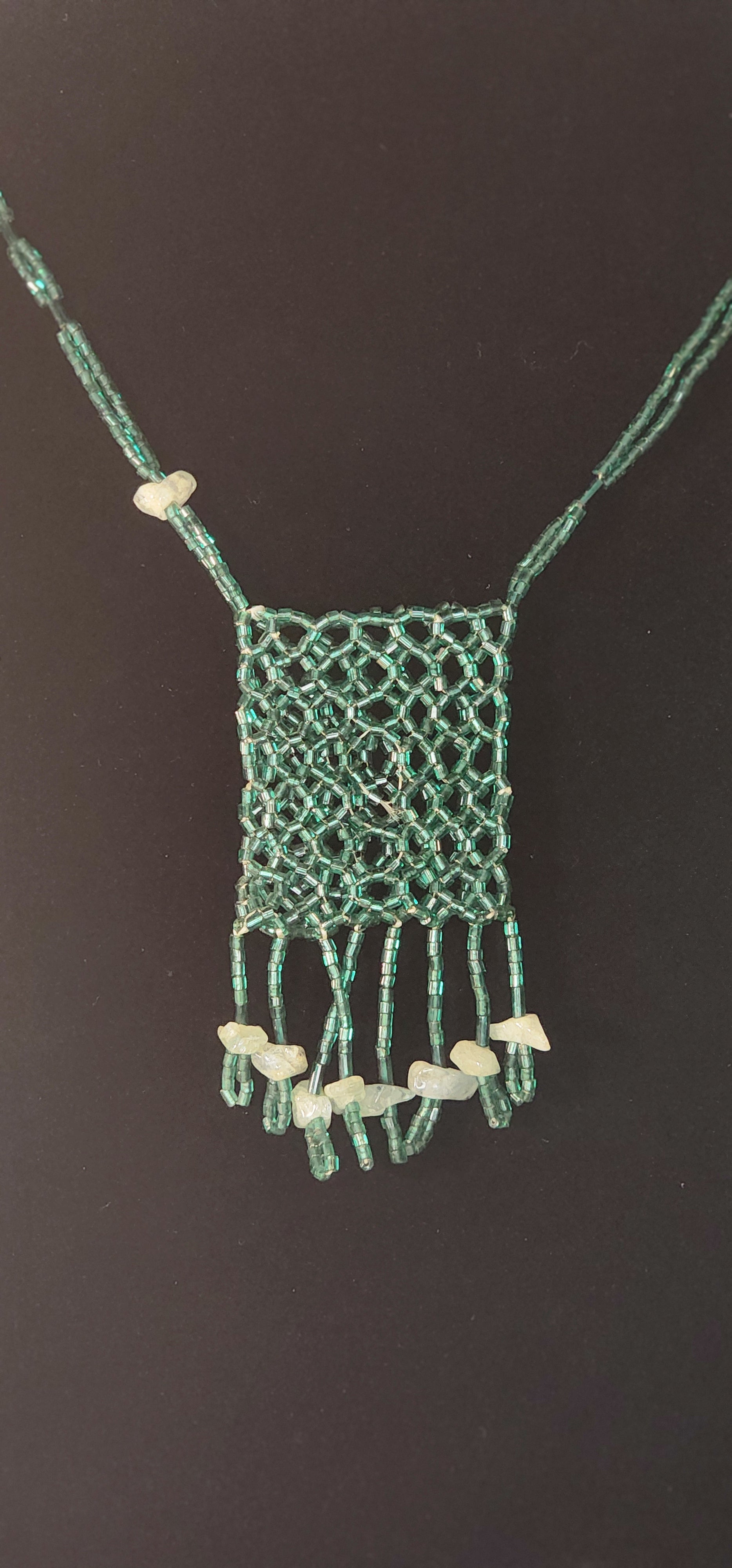 Handmade Beaded Pouch Necklaces – #402 - Ever-green